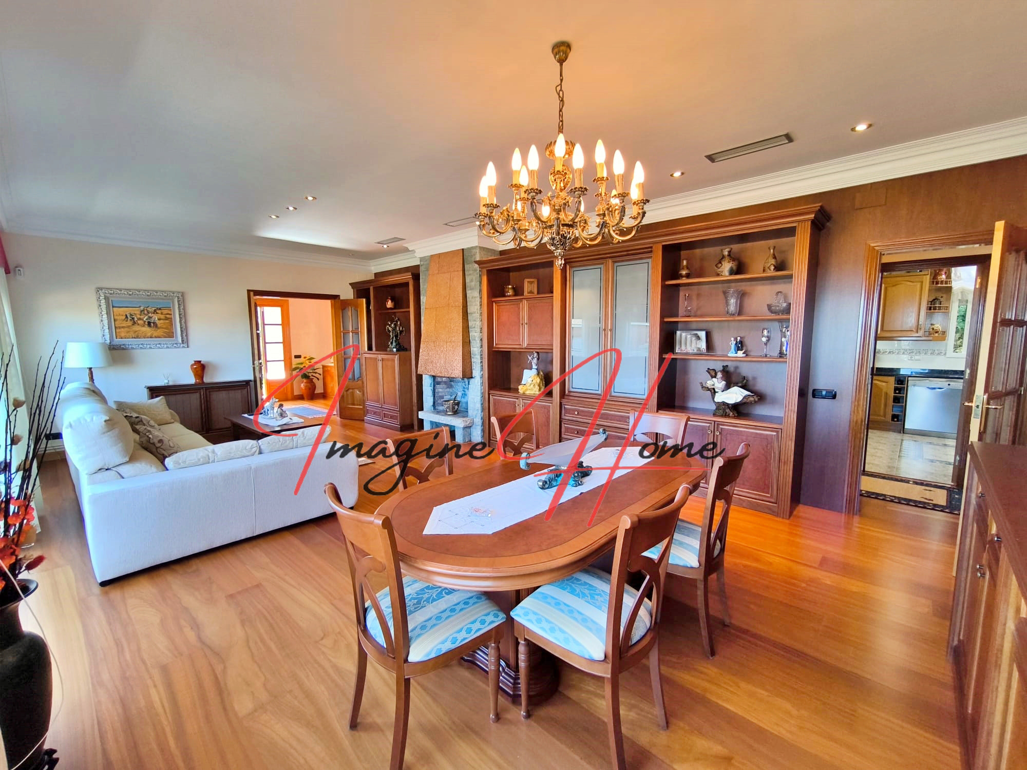 Un punto destacado de esta propiedad es su acogedor salón con chimenea y vistas despejadas, un lugar perfecto para relajarse o entretener a familiares y amigos.